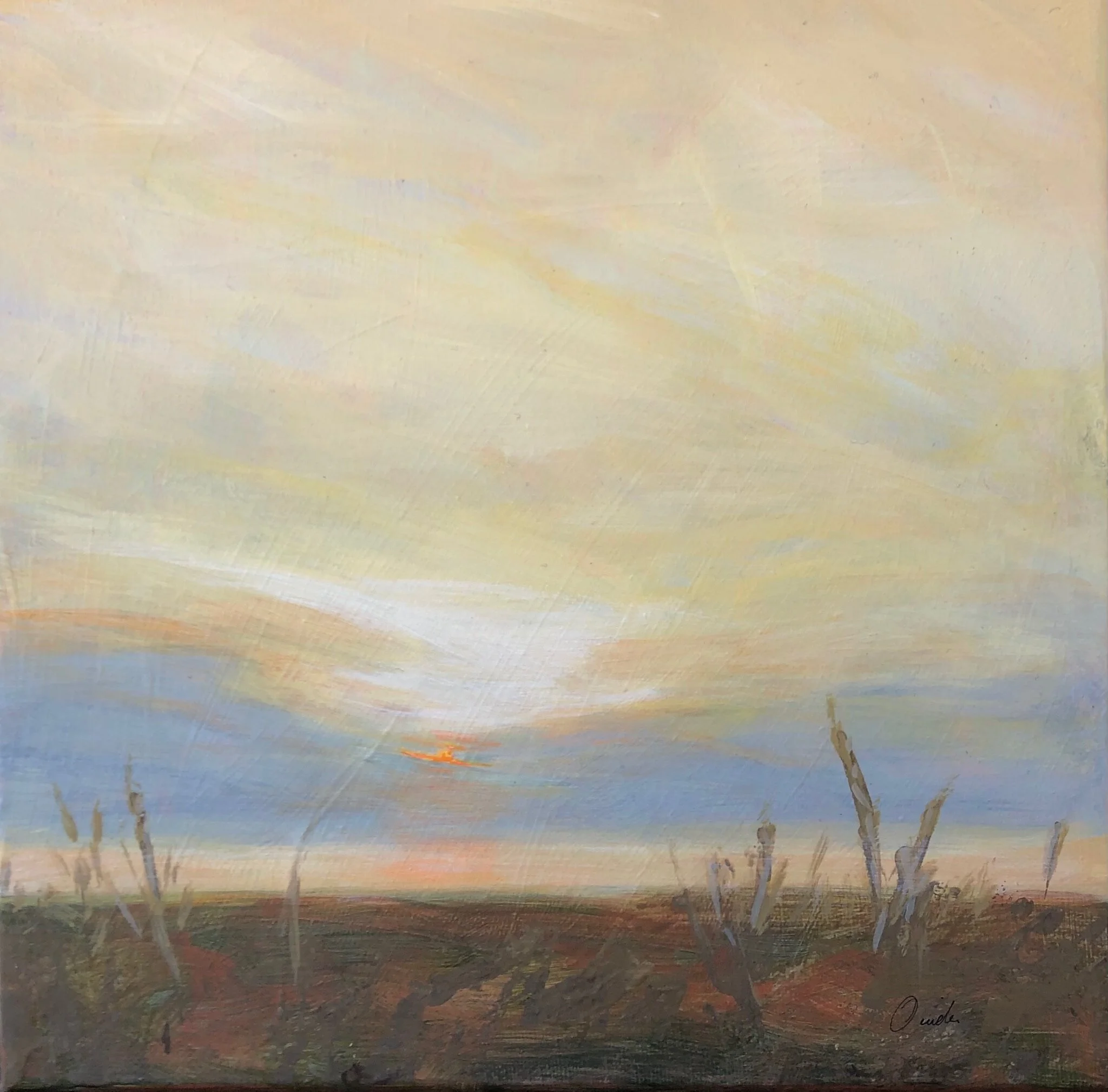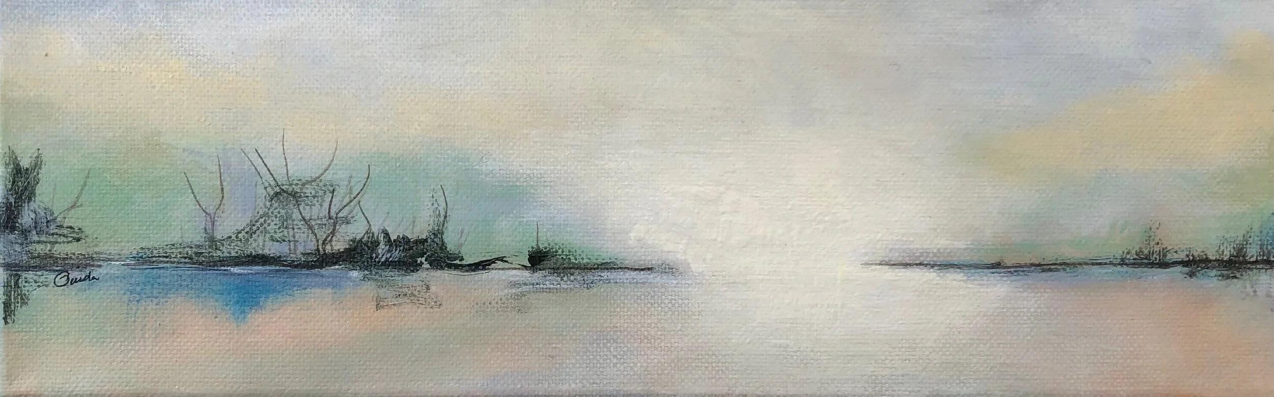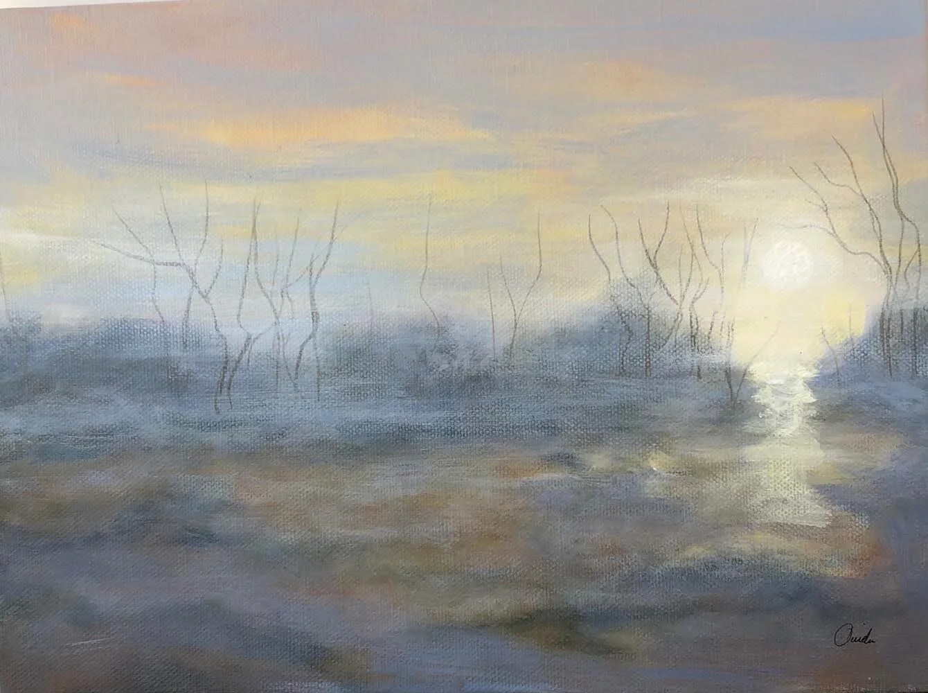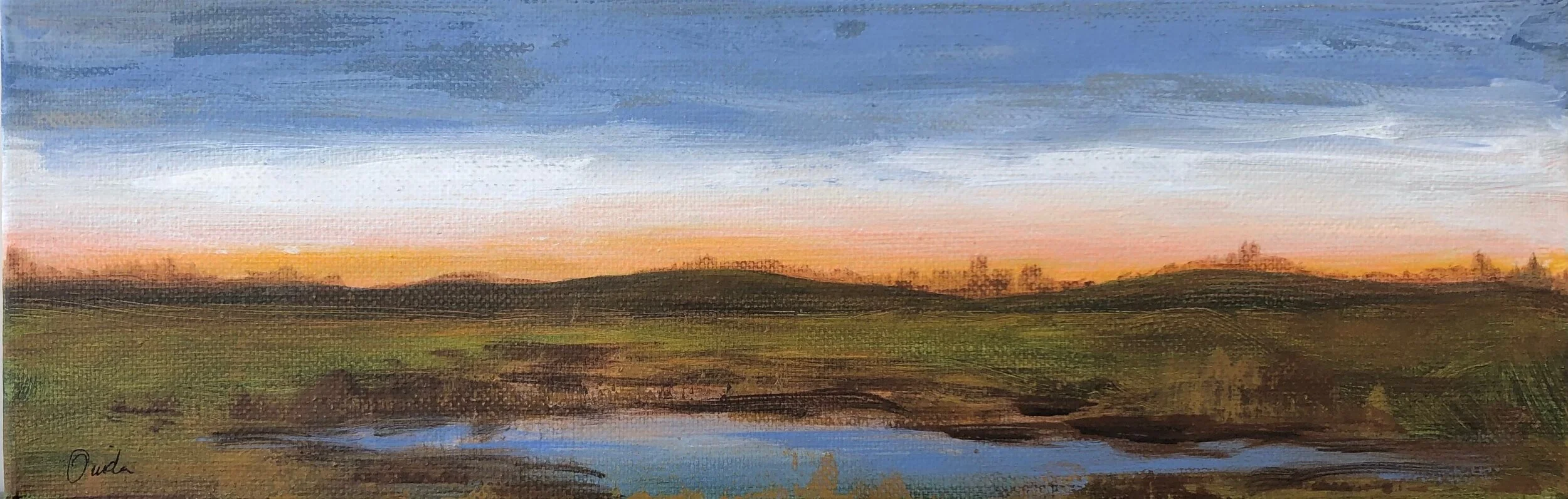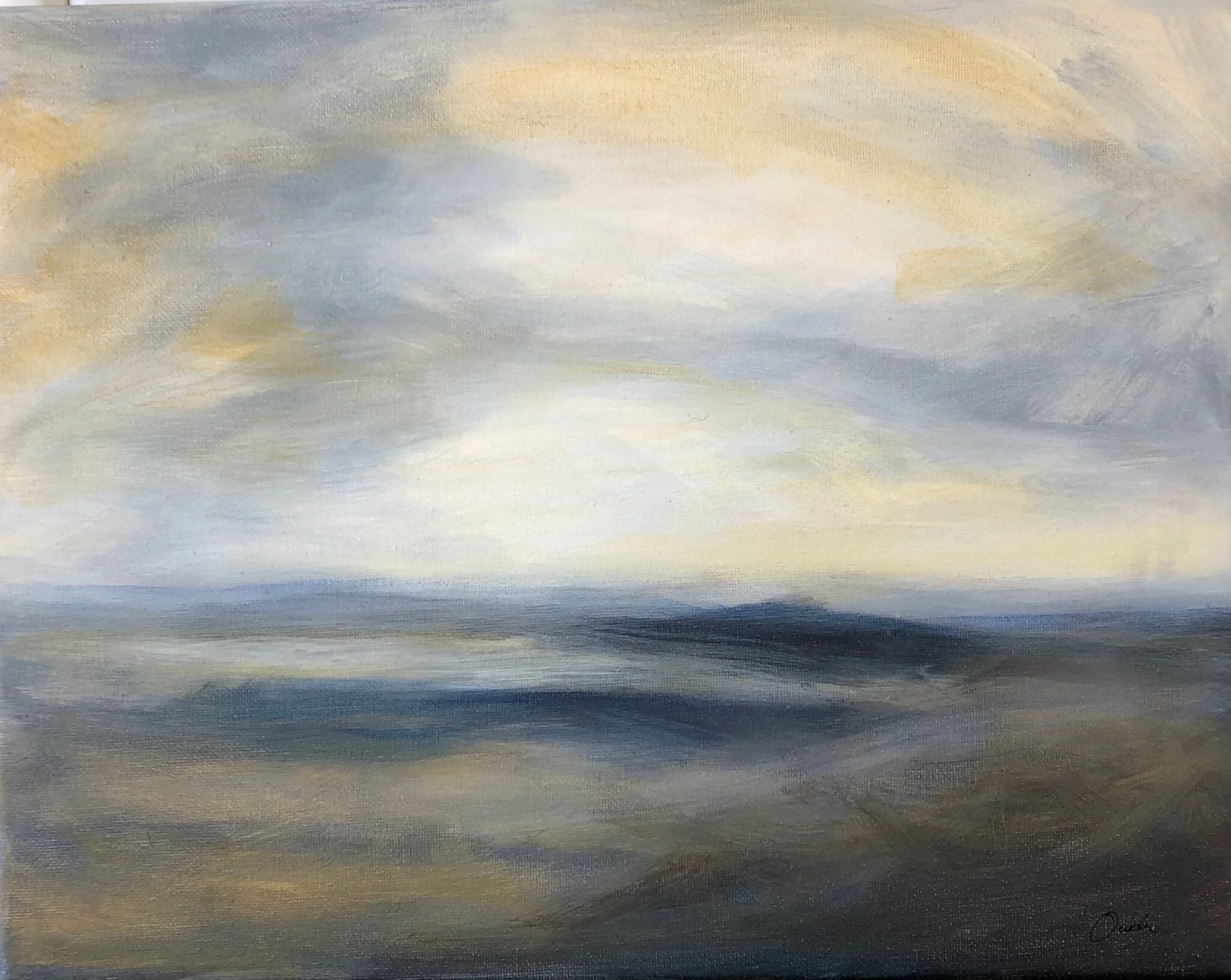 Ouida’s primary style of painting is Tonalism, that of painting muted landscapes without physical structures. Her current work reflects this style of painting and allows for experimentation in a variety of color palettes and landscape choices.