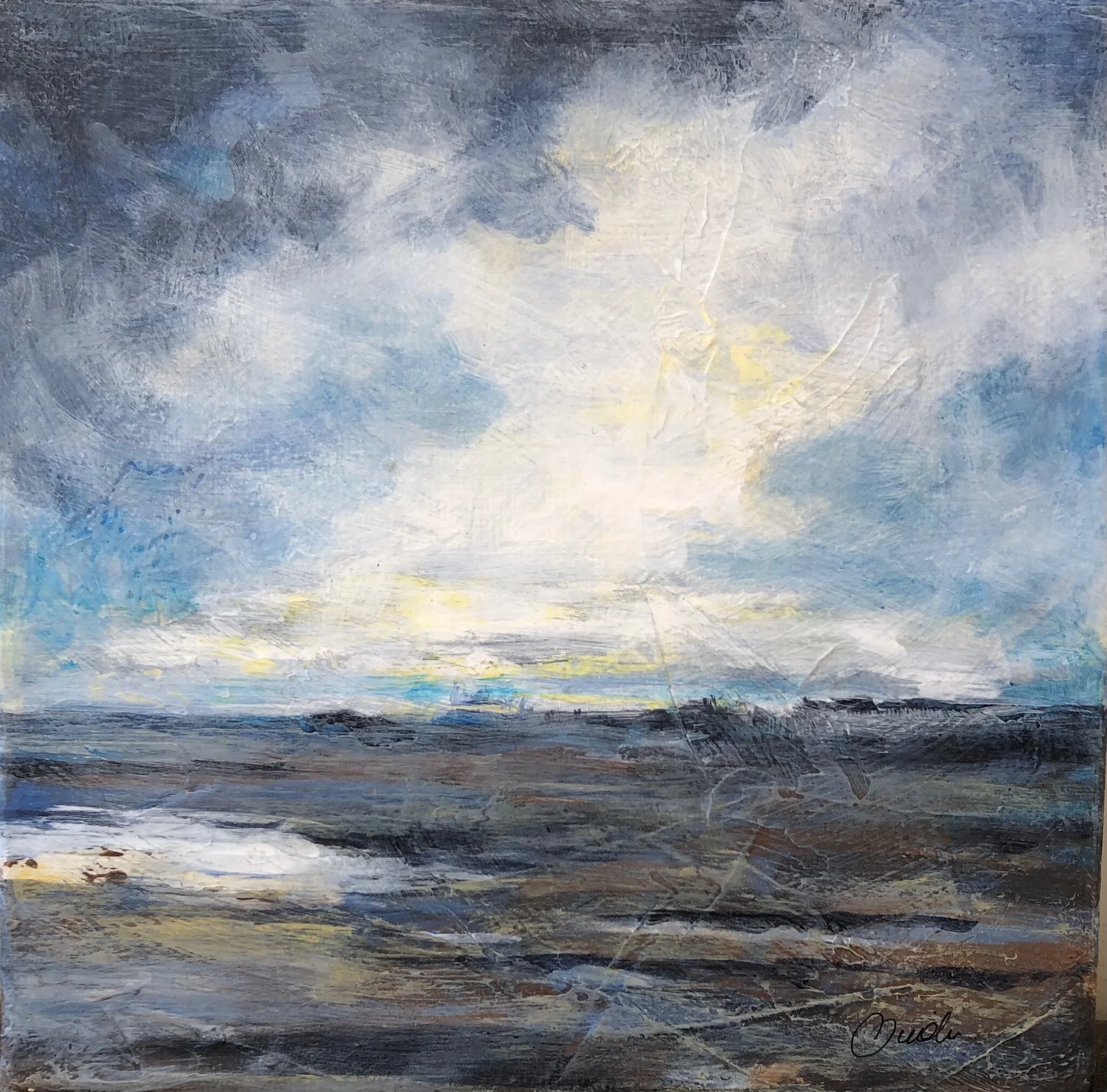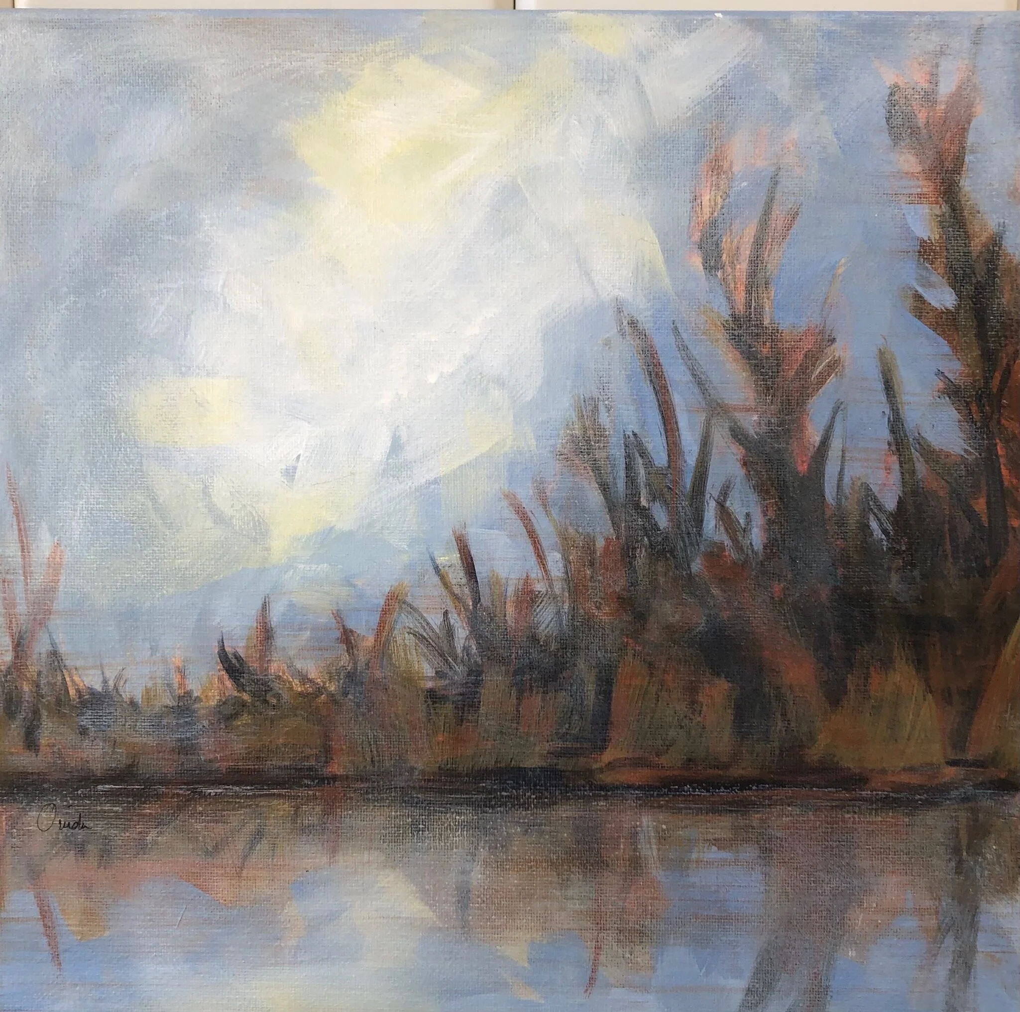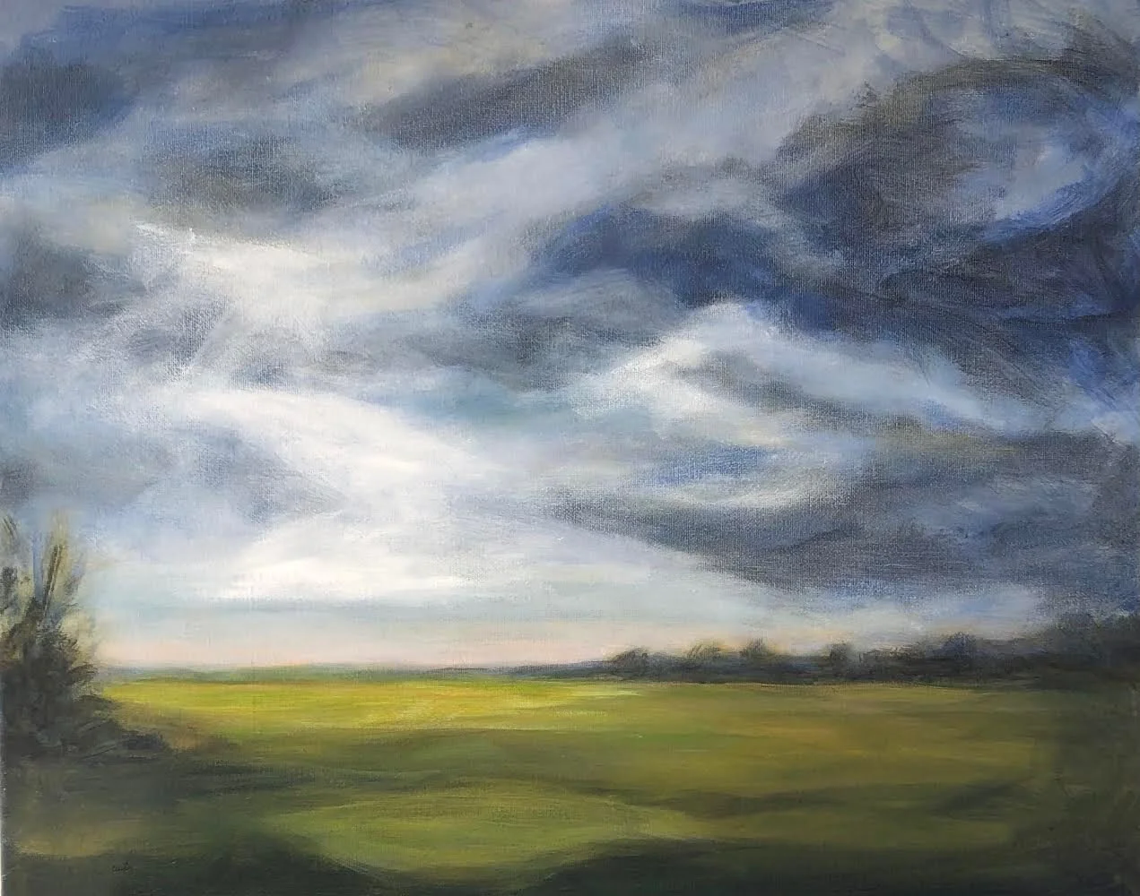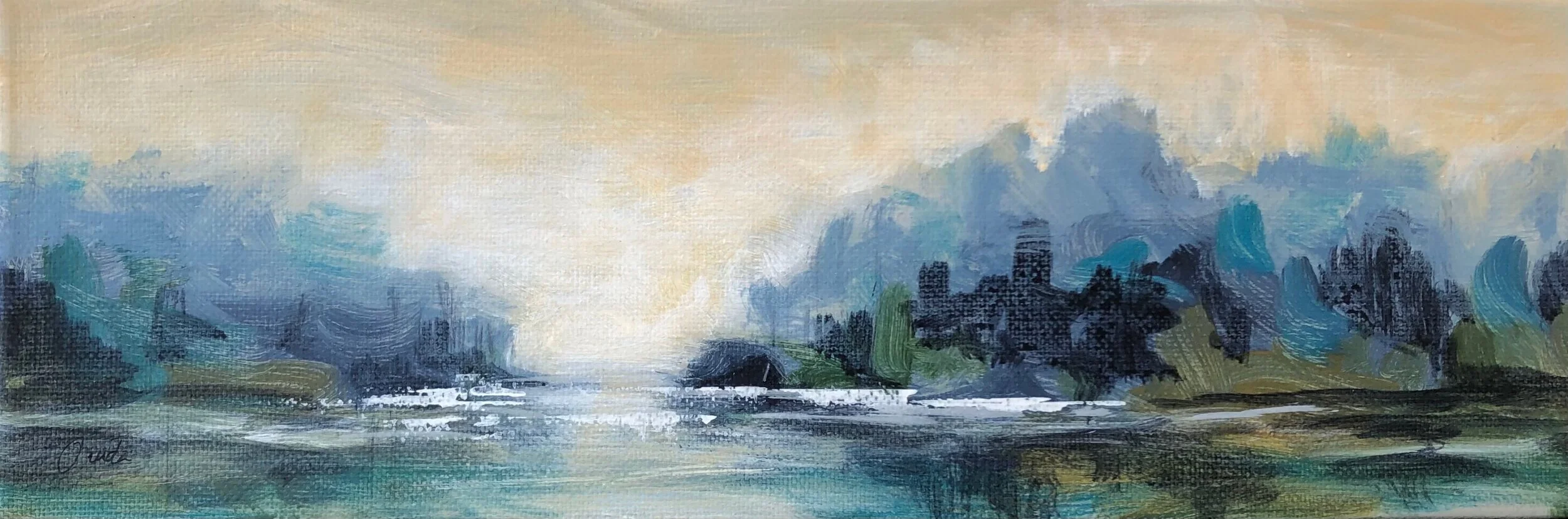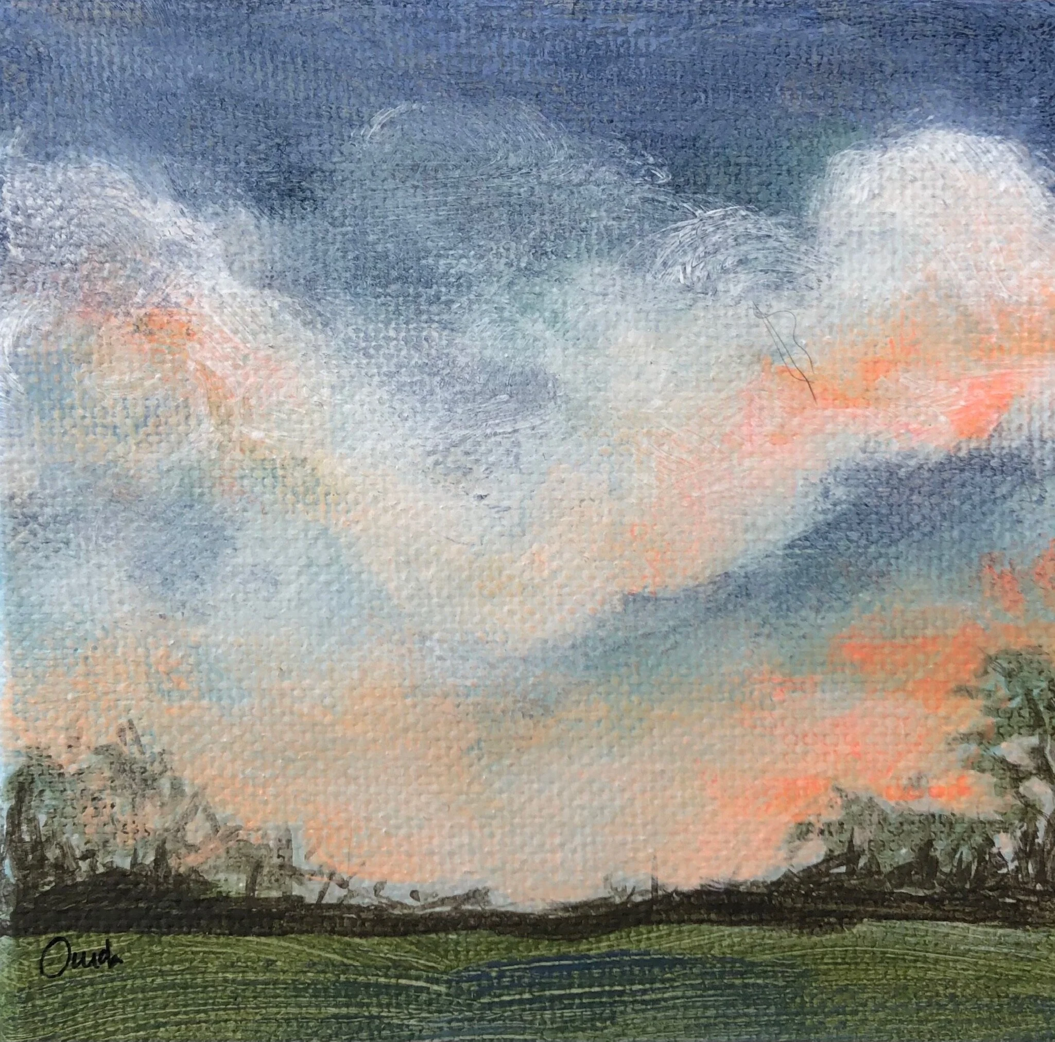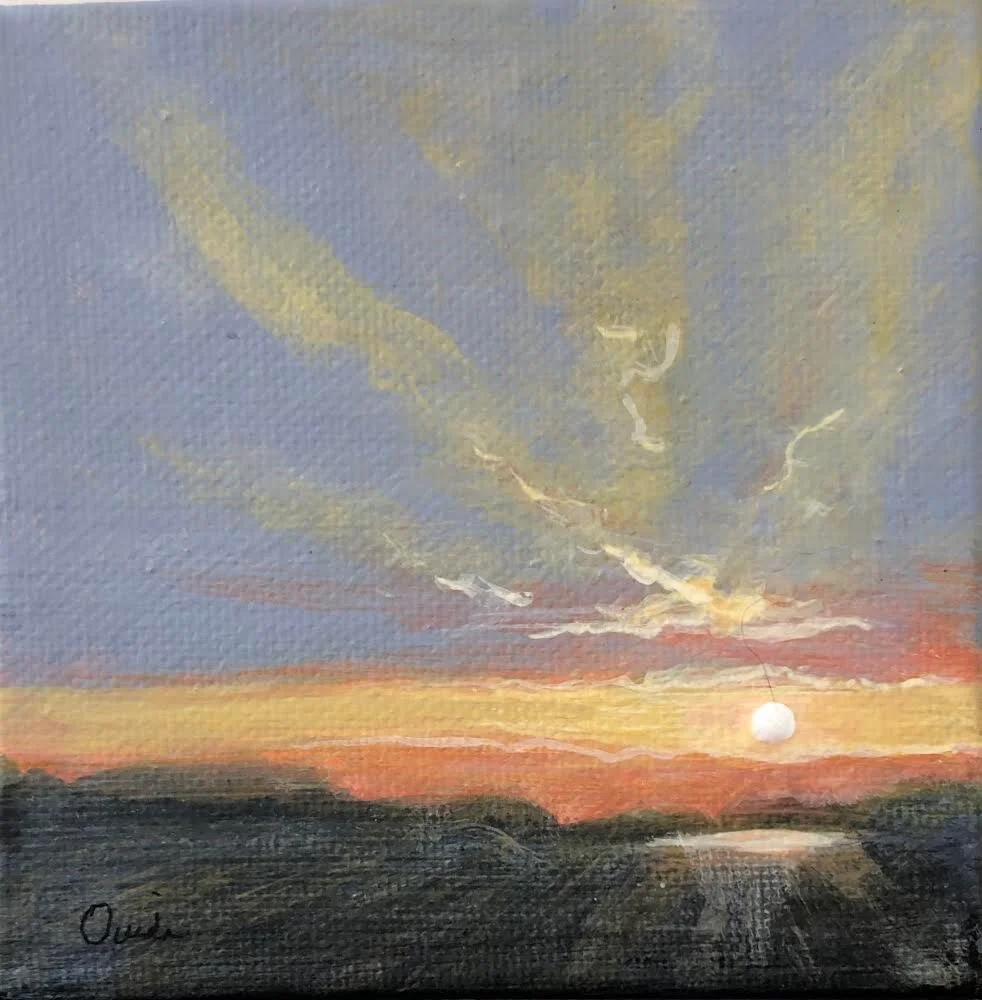 Ouida’s primary style of painting is Tonalism, that of painting muted landscapes without physical structures. Her current work reflects this style of painting and allows for experimentation in a variety of color palettes and landscape choices.