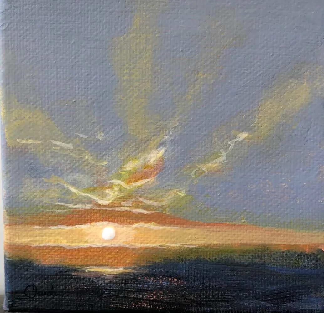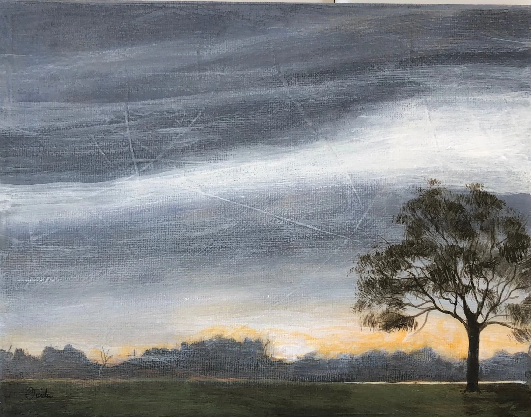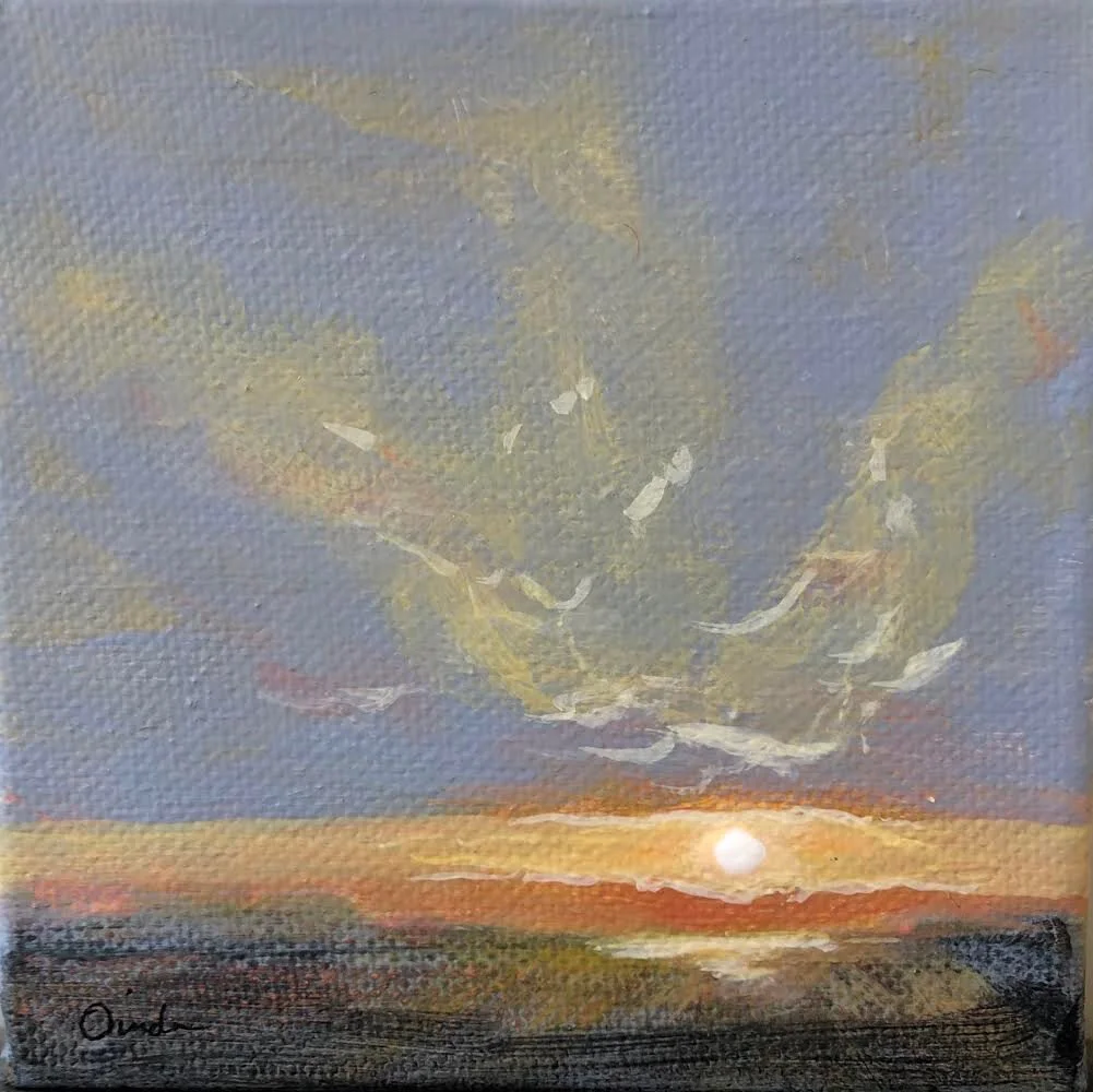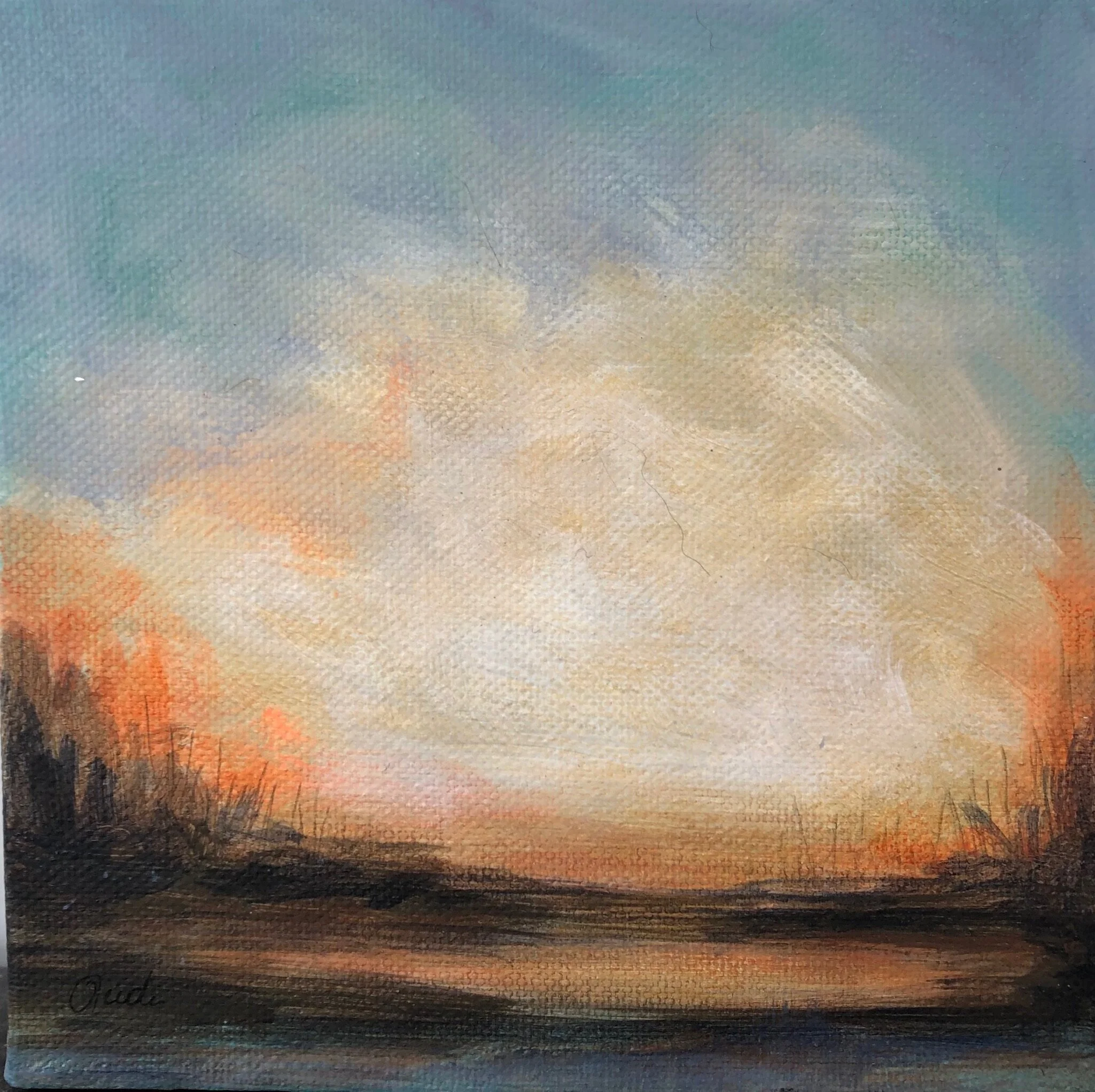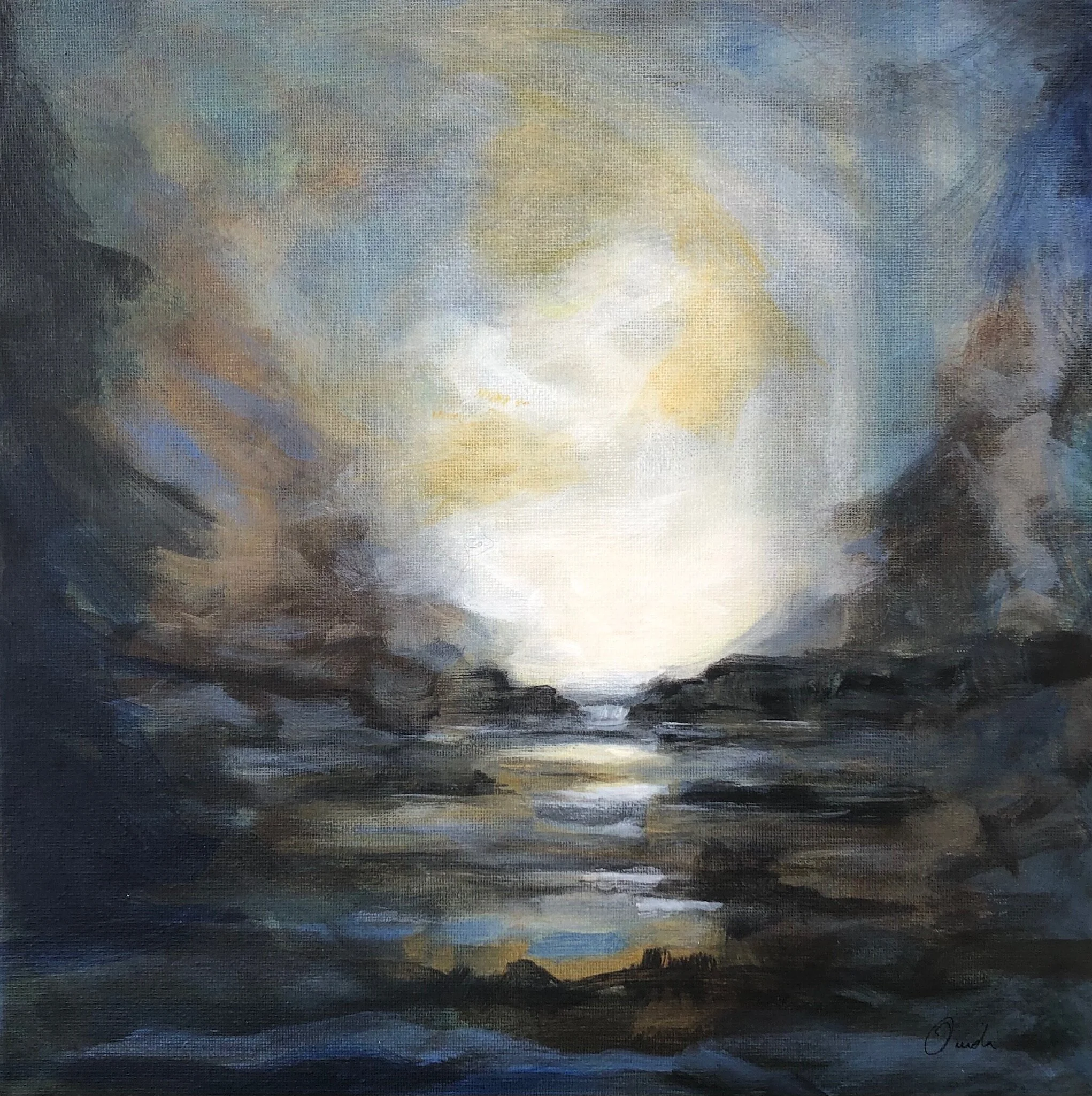 Ouida’s primary style of painting is Tonalism, that of painting muted landscapes without physical structures. Her current work reflects this style of painting and allows for experimentation in a variety of color palettes and landscape choices.
